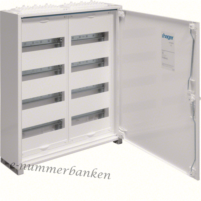 Komplett normskåp i plåt. Dörr och multifläns, IP44 höjd 650mm 96 moduler 2-fältbredder.