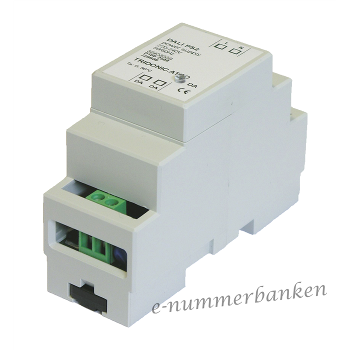 DALI PS2 strömförsörjning för installation på DIN skena i apparatskåp.