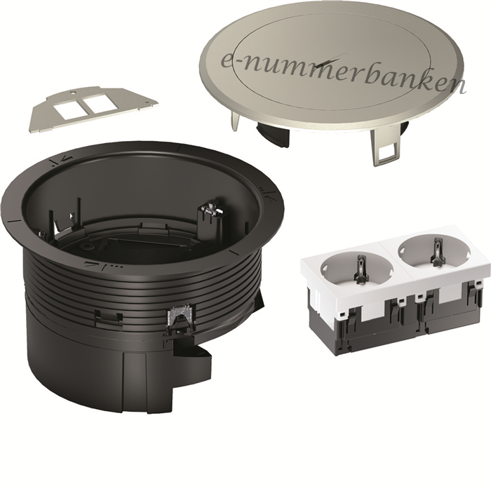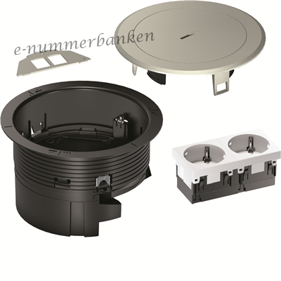 Golvboxset med skruvlock IP64/ IP20, 2-Vägs uttag, mont.-bricka 2xKeystone, (19,3x14,8) max 15kN, IK10, metall, Silver