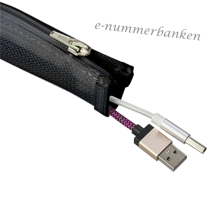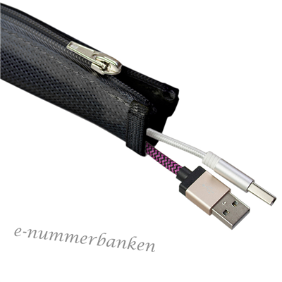 Kabelstrumpa Flätad Ø 20 mm Blixtlås, fast längd 1,5 m, Svart