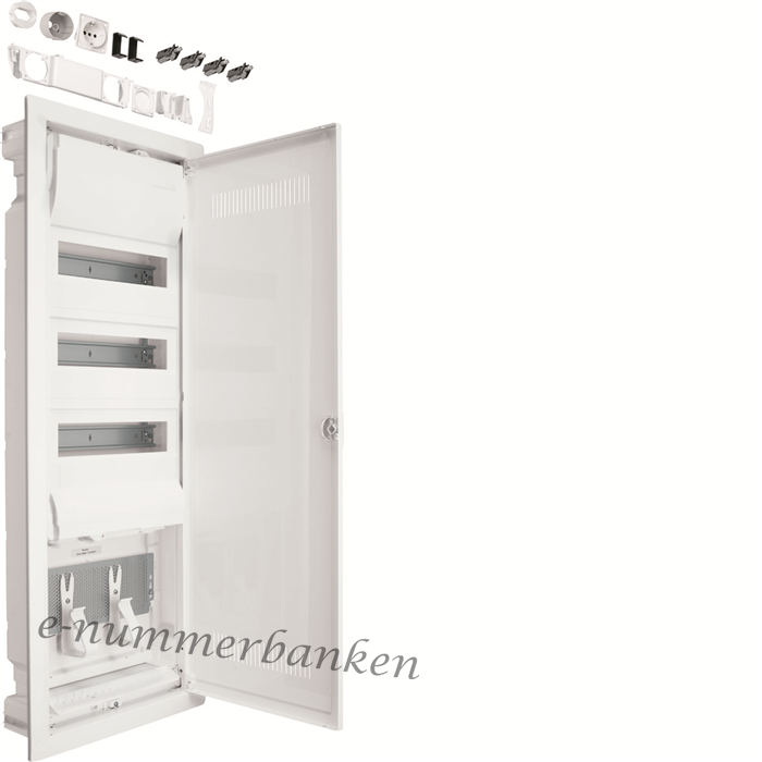 Kombicentral volta Hybrid för hålvägg. 36 mod. med mediaplåt, uttag, Plastdörr