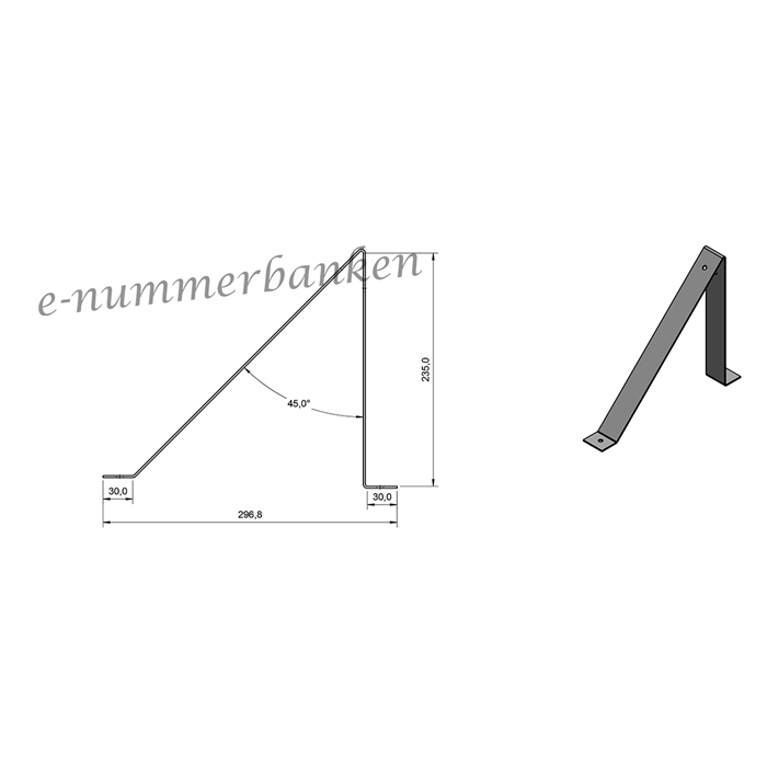 Väggkonsol, Mått (HxBxD) 300x40x235mm, galvplåt, 45- eller 90° montage, montageskruv/mutter till armatur medföljer